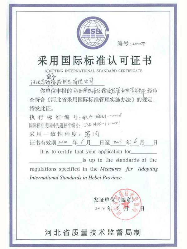 • 鋼絲纏繞管國際標(biāo)準(zhǔn)產(chǎn)品標(biāo)志證書